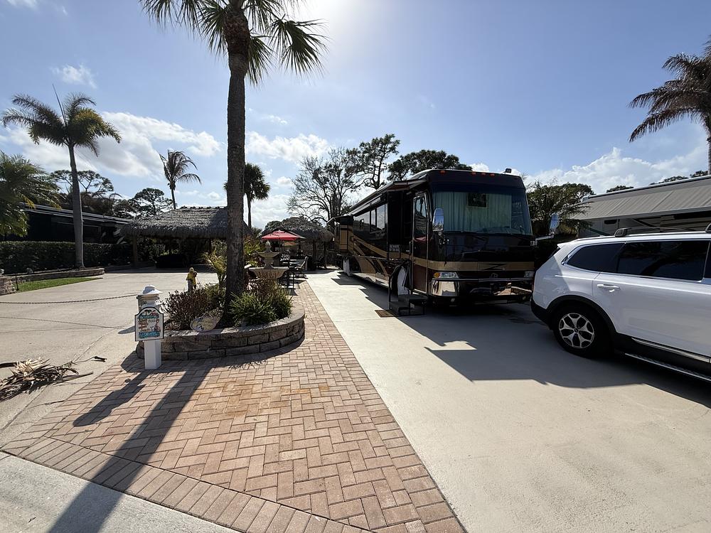 The lot is nicely appointed and designed for comfortable outdoor living, featuring a spacious tiki hut and a beautiful large water fountain that adds both ambiance and charm to the space. Sold furnished, the seating and setup make it easy to settle in immediately and start enjoying the resort lifestyle.