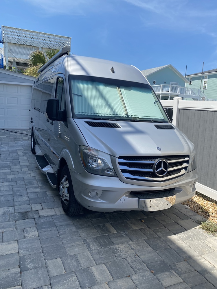 2015 Winnebago ERA 170X, Experience the comfort and convenience of this Class B diesel motorhome that is designed to enhance your travel experience. With features like 4-wheel ABS brakes and stainless steel wheel liners, safety and style go hand in hand. Enjoy the flexibility of a 7-pin wiring connector for all your towing needs. The cab seats provide utmost comfort with armrests, adjustable lumbar support, headrest, and slide/swivel/recline functions. Cruise control makes long drives a breeze, while power steering with tilt wheel ensures easy maneuverability. Stay connected with power mirrors featuring defrost and turn signals, as well as power door locks with a remote. The interior is thoughtfully designed with 12-volt power points, power windows, and pleated sliding front window blinds. Relax and entertain with a 22" HDTV and coach stereo system featuring AM/FM radio, Bluetooth, CD DVD player, and remote. Enjoy the convenience of the Jack digital TV antenna, LED ceiling lights, and MCD blackout roller shades. The soft vinyl ceiling and tinted coach windows create a cozy and inviting atmosphere. Stay cool and ventilated with the powered ventilator fan and roof vent. The motorhome is equipped with a powered sofa bed and removable companion seats with swivel and slide functions. Monitor your systems easily with the system monitor panel. The kitchen features a Corian solid surface countertop, microwave/convection oven, 2-burner range top with a glass cover, refrigerator/freezer, and a stainless steel sink with a folding faucet and glass cover. Enjoy clean and refreshing water with the cold water filtration system. The bathroom includes a flexible shower head, shower curtain, and a toilet with a foot pedal and sprayer. The side screen door offers easy access to the outdoors. Relax and enjoy the outdoors under the powered patio awning with LED lighting, and illuminate the surroundings with the porch light. The motorhome is complete with running boards, rocker trim, and a mud guard for added convenience and style.