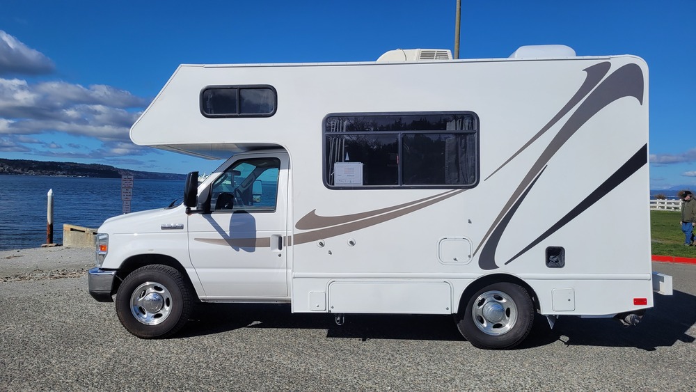 Gelcoat paint, generator tune-up, excellent tires, fluids changed, full-size spare tire, commercial quality fabrics, water-resistant composite roofing, removable outdoor picnic table, spacious "basement” storage, chemical-free winterization, central heating, solar battery charger ready, all wood oak cabinets, Class III hitch w/ Tow/Haul.