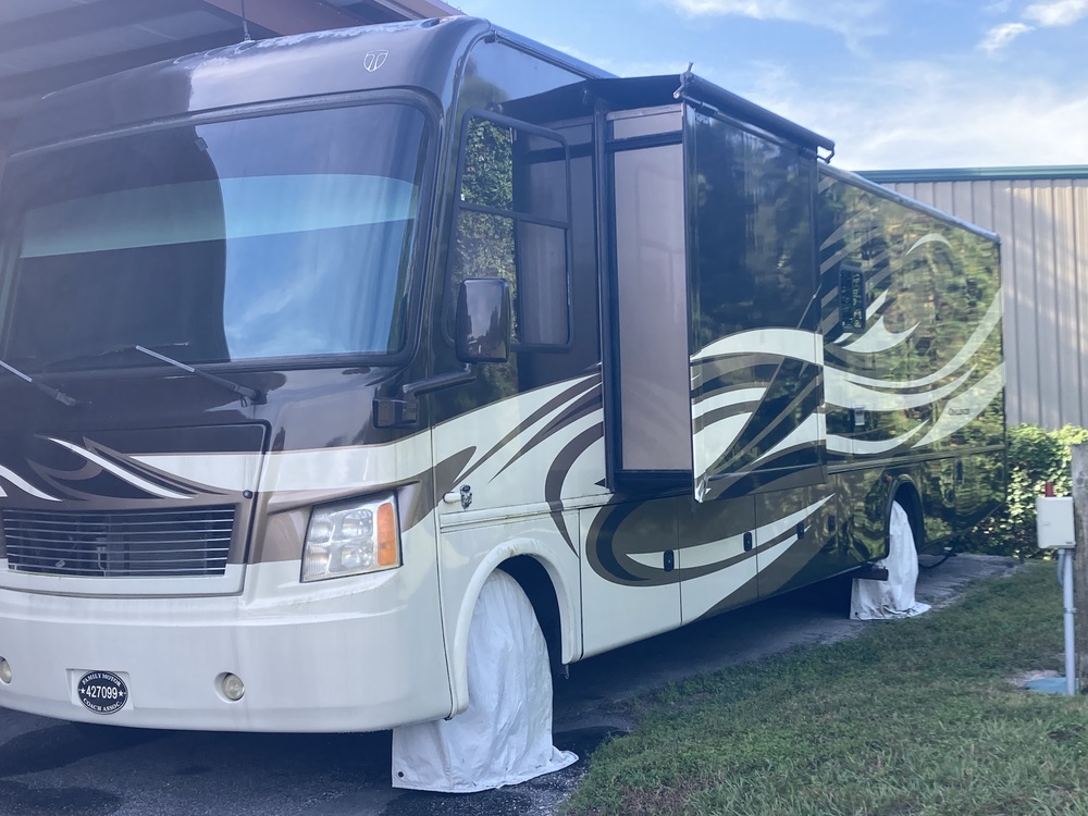 This RV has a King Bed with nightstands, 4 LCD TV's (Bedroom, Dinning Room, Living Room and Outside); Fireplace, New Captain and Passenger Seats, 2 New Recliners, Towing Package and everything you see in photos. Tables, hoses, outdoor chairs, outdoor rugs, beach cart, outdoor end tables, gas grill, step latter's and all waste management materials. Everything inside from coffee makers, silverware, plates, cups, pots and pans, etc. Virtually everything you need to start you perfect vacation. This is a truly a turn key purchase.