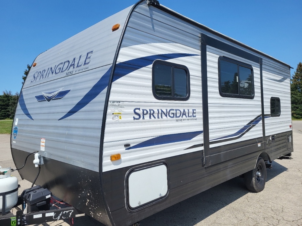 Clean, undamaged unit. It feels like a new one when you walk inside. No sun burn, crisp colors, four stabilizers, only 3700 lbs. so you can tow it with any SUV. It can sleep up to six people.