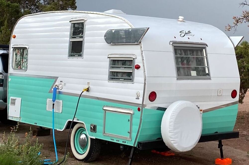 Limited Edition 2016 Reissue of the 1961 Shasta Airflyte with modern conveniences. The 2016 Shasta Airflyte Reissue is a nearly exact replica of its iconic 1961 Shasta Airflyte 16SC Travel Trailer. To commemorate their 75th anniversary Shasta (Forest River) produced a limited number of these trailers. The Shasta weights roughly 2,270 pounds, making it easily tow-able behind most SUVs, sedans, and mini vans. Front fold-down bed and rear pull-out gaucho bed sleeps a total of 2-3 (see pic for floor plan). Includes awning, checkered mat, camping gear, solar panels, and extensive upgrades. Upgrades include Renogy lithium battery, Renogy battery monitor with bluetooth/leveling sensor, WFCO lithium converter/distribution center, trailer-rated whitewall tires, custom rear bumper with waste tube storage, folding solar panels, exterior solar panel port, sway control hitch mount, LED television with bluetooth casting, upgraded air conditioning unit (see pic for additional upgrade details). Very well maintained. See photos for specifications/dimensions. $15,500 obo. If you’re seeing this ad…it’s available.