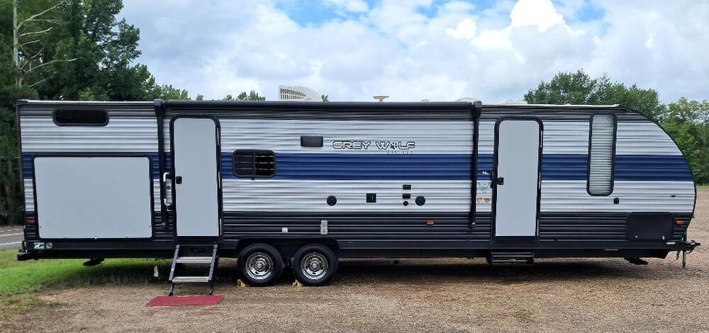 The Cherokee Grey Wolf is engineered with impeccable quality, distinctive features, and superior comfort! This bunkhouse travel trailer offers customers a chance to escape the ordinary and relax, to enjoy family and friends. One of the Cherokee best features is the built-in outdoor kitchen that includes a Two-door Contoure refrigerator, Ice maker, Single sink, Two-burner propane stove, pull out drawer, and storage cabinet.