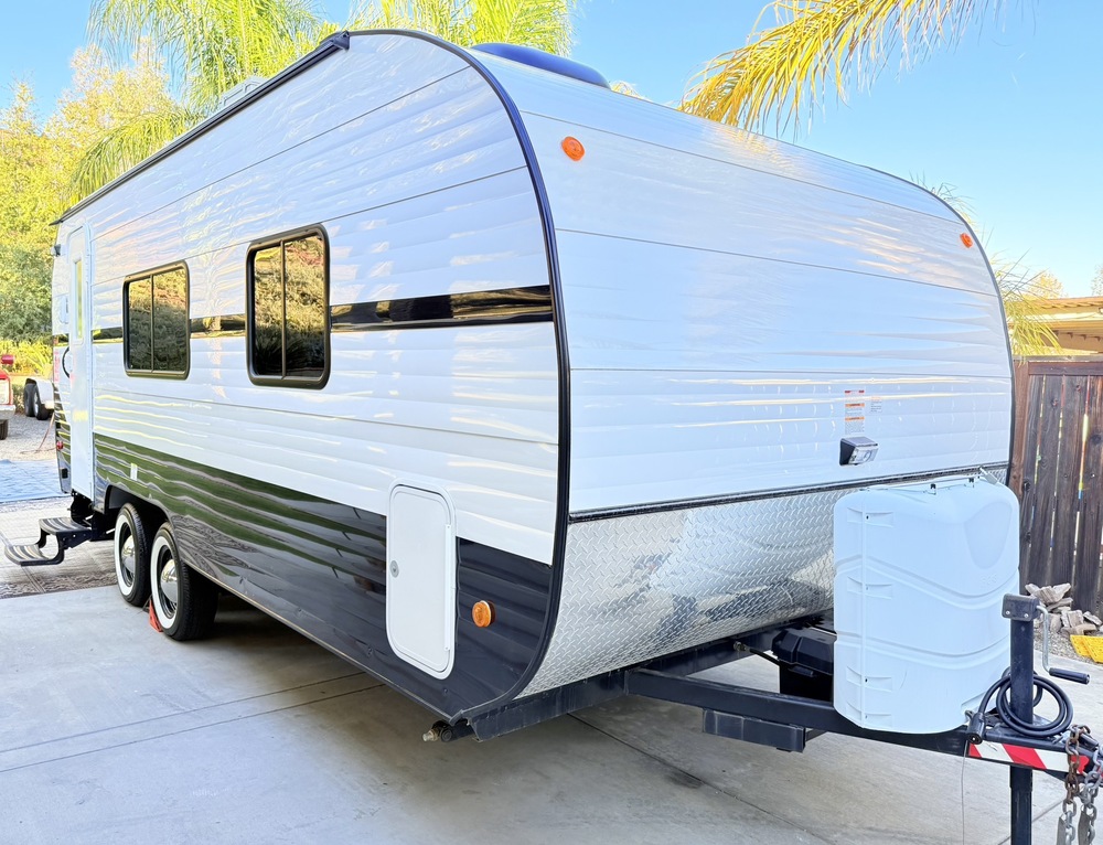 2018 Riverside retro 23-foot RV is an 189R model ultra-lightweight 3700 pounds