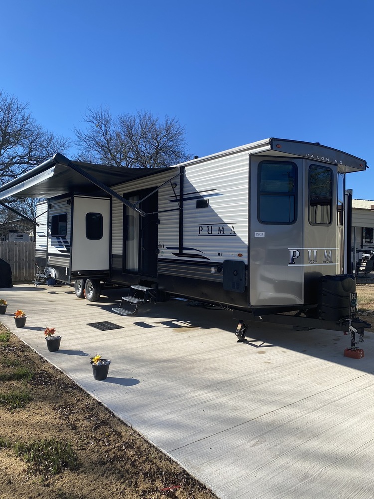 4 electric slide outs2 air conditions, ceiling fan king size walk around bed hide a bed full apartment appliances plus washer and dryer for season installation package roll out awning roll down jacks large, hot water heater no smokers no pets clear title the perfect tiny home call ann 701-500-4253