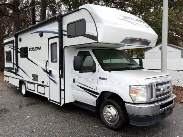 The 2023 Forest River Solera 27DSE is a high-quality Class C motorhome perfect for families or couples looking to hit the open road in style and comfort. With only 13,553 miles on the odometer, this RV is practically brand new and ready for all your adventures. The sleek design and modern amenities make it a standout choice in the Class C category. The Forest River brand is known for its attention to detail and commitment to quality, and the Solera is no exception.Inside, you'll find a spacious and well-appointed living area complete with all the comforts of home. The kitchen features high-end appliances, ample storage, and a stylish design that will make meal prep a breeze. The dining and lounge area is perfect for relaxing after a day of exploring, and the large windows provide plenty of natural light and great views of the outdoors.The bedroom is cozy and inviting, with a comfortable bed and plenty of storage for all your belongings. The bathroom is also well-equipped with a shower, toilet, and sink. With all these features, you'll feel right at home no matter where your travels take you.On the exterior, the Forest River Solera 27DSE boasts a durable construction and modern design. The sleek lines and stylish graphics give this motorhome a polished look that will turn heads wherever you go. The ample storage compartments provide plenty of room for all your gear, and the awning offers a shady spot to relax outside.Overall, the 2023 Forest River Solera 27DSE is a top-of-the-line Class C motorhome that offers luxury, style, and comfort in one compact package. With low mileage and high-quality construction, this RV is sure to provide years of enjoyment for you and your loved ones. Don't miss your chance to own this exceptional vehicle and start making memories on the road today!