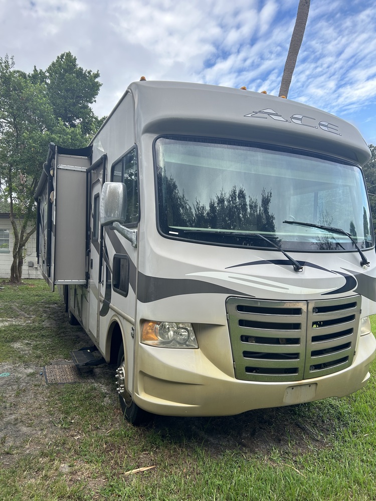 The 2014 Thor Motor Coach A.C.E. 27.1 is a Class A motorhome that offers both luxury and functionality for your travels. With only 9140 miles on the odometer, this RV has plenty of road trips left to enjoy. The Thor Motor Coach brand is known for its high-quality construction and attention to detail, making this A.C.E. model a reliable choice for your next adventure. The 27.1 floorplan is cleverly designed to maximize space and comfort, with a well-appointed interior featuring modern amenities and stylish finishes. The kitchen is equipped with everything you need to whip up delicious meals on the road, including a refrigerator, microwave, and stove. The living area is spacious and cozy, perfect for relaxing after a long day of exploring. This motorhome is ideal for both weekend getaways and extended vacations, with sleeping space for up to six people. The rear bedroom offers a comfortable queen-sized bed, while the convertible sofa and dinette provide additional sleeping options. With ample storage throughout the RV, you can bring all the comforts of home with you on your travels. Outside, the Thor Motor Coach A.C.E. 27.1 boasts a power awning, exterior entertainment center, and plenty of storage compartments for all your gear. The sleek exterior design is sure to turn heads wherever you go, while the powerful engine ensures a smooth and reliable driving experience. Overall, the 2014 Thor Motor Coach A.C.E. 27.1 is a fantastic choice for anyone looking to hit the road in style and comfort. Whether you're a seasoned RVer or new to the lifestyle, this Class A motorhome has everything you need to make unforgettable memories on your next journey. The following upgrades have been made. New slide pullout topper 2024 - New tires 2023 - New refrigerator 2023 - AC unit replaced 2021 - Leveling system replaced 2021 - Pull down shades and black out shades installed - outside TV.