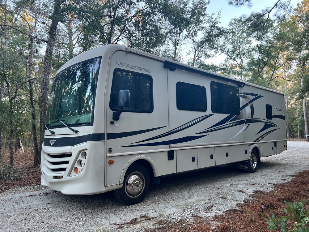 The 2017 Fleetwood Flair 31B is a Class A motorhome designed for comfortable and convenient travel. With a mileage of 36,652 miles, this RV has plenty of road trips left in it. The Fleetwood brand is known for quality and durability, making this motorhome a reliable option for all your adventures.The exterior of the Fleetwood Flair sleek with a fun flair finish that is sure to turn heads on the road. The many windows allow for plenty of natural light to flow into the living space, creating a bright and inviting atmosphere inside.Stepping inside, you'll find a spacious interior with all the amenities you need for a comfortable trip. The kitchen is equipped with modern appliances, a spacious refrigerator, and plenty of storage space for all your cooking needs. The dinette area provides ample seating for family meals or game nights, while the cozy sofa is actually dual recliners, perfect for relaxing after a long day of exploring.The bedroom features a comfortable queen-sized bed, perfect for a restful night's sleep. With plenty of storage space and a separate bathroom with a shower, this motorhome has everything you need for a home-away-from-home experience.This particular rv has many upgrades, from an on-board washer/dryer, to spare chest freezer, a desk area with dropdown screens, an upgraded large kitchen sink with inserts, and even custom built-in pantry storage wall. In terms of driving, the Fleetwood Flair is easy to maneuver thanks to its Class A design. The powerful gas engine ensures a smooth ride, while the comfortable cockpit makes long drives a breeze. Whether you're hitting the open road for a cross-country adventure or just heading to your favorite campground for the weekend, the Fleetwood Flair 31B is the perfect choice for all your travel needs. You can hook up to shore power or use your generator if youre more isolated off grid. And, this rig is all set up for a solar system for the even more adventurous! Overall, the 2017 Fleetwood Flair 31B is a top-of-the-line Class A motorhome that offers both comfort and style. With its modern design, spacious interior, and reliable performance, this RV is sure to provide you with years of happy travels and unforgettable memories.