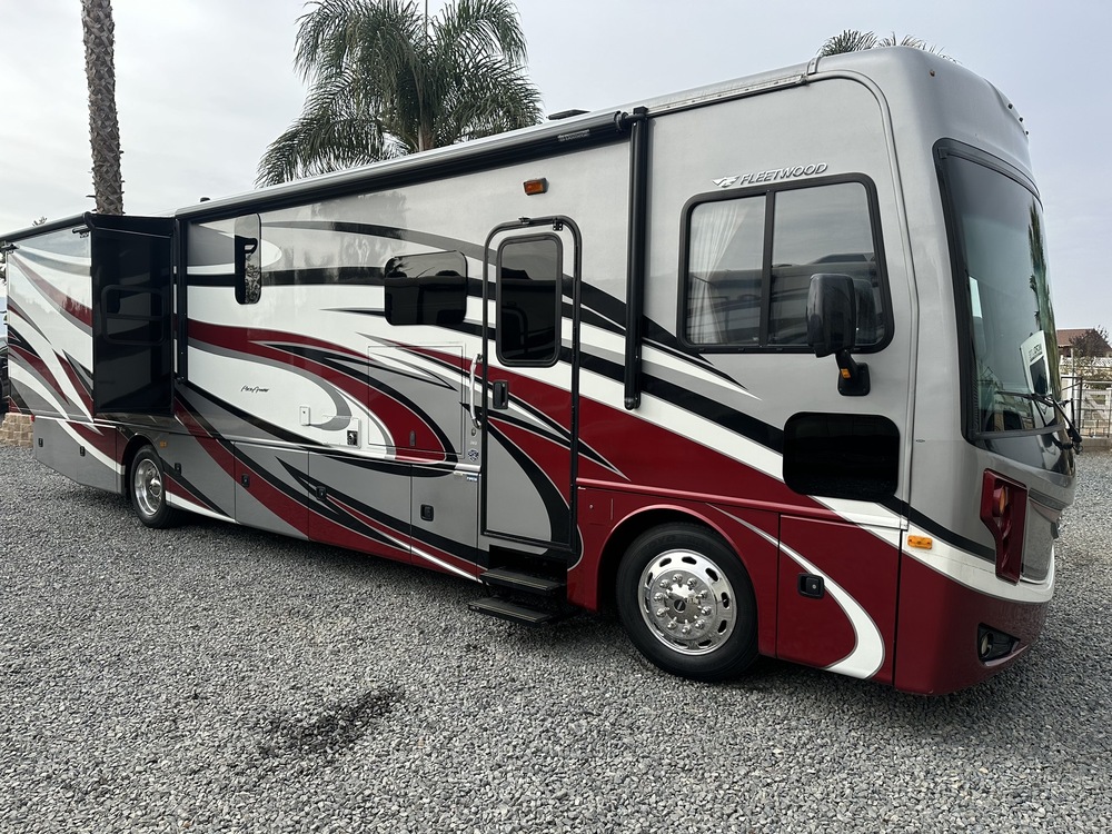 Lightly Used, low mileage, super clean diesel pusher- bath and a half, king bed, drop down front bed, nice sofa bed in front of the TV, dinette booth / bed, fireplace, two large slides, residential fridge, new batteries, new Toyo tires, fresh service (fluids changed), no leaks, no pet / smoke /foul odors, inverter, power shade, washer and dryer (separate units), auto leveling jacks, outside TV, power awning, Cummins ISB with 340HP, aluminum wheels, Onan diesel generator with less than 200 hours, 10k tow package, plus more.