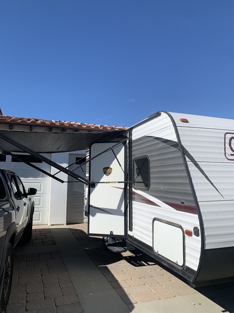 Travel trailer located near Palm Springs Ca. The 2019 Dutchmen Coleman 18RB is a versatile and compact travel trailer perfect for families or couples looking to hit the road and explore the great outdoors. This well-maintained RV is ready for your next adventure.This travel trailer offers a comfortable and spacious interior with all the amenities you need for a memorable trip. The cozy sleeping area features a comfortable bed, while the dinette can easily convert into an additional sleeping space. The kitchen is equipped with a stove, refrigerator, and microwave, making meal preparation a breeze. The bathroom includes a shower, sink, and toilet for added convenience.Outside, the Dutchmen Coleman 18RB boasts a sturdy and stylish design. The exterior features a power awning, outdoor speakers, and plenty of storage for all your gear. Whether you're camping in the mountains or by the beach, this travel trailer is sure to provide a comfortable and enjoyable experience.With its lightweight and aerodynamic design, towing the Dutchmen Coleman 18RB is a breeze. Whether you're a seasoned RV enthusiast or a first-time buyer, this travel trailer is easy to maneuver and park, making it the perfect choice for weekend getaways or extended road trips.Overall, the 2019 Dutchmen Coleman 18RB is a reliable and well-equipped travel trailer that offers comfort, convenience, and versatility. Don't miss out on the opportunity to own this fantastic RV and start making memories that will last a lifetime.