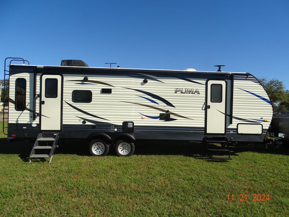 Wow--Very clean inside & out and Ready for immediate use! Has been used Lightly by adults & was Never smoked in nor had any pets or kids inside. Has a clean pleasant scent--No odors, fading, rips, tears or wearing of interior. This rear living is one of the most sought after floor plans of this size due to it's simplicity & accessibility of the open living floor plan--it just does not have that "crowded" feel to it like others of the same size--even with 3 or 4 people inside. The interior decor is made up of neutral warm earth hues paired with espresso cabinetry accompanied by white clean LED lighting throughout. This open living area features a new 40" smart tv that can be easily viewed from every seat as well as a loveseat that folds out for an extra sleeping space if needed. Everything is Operational & working properly: plumbing, electrical, slide outs, appliances, AC, heat, power awning, etc. The Roofing & flooring are good & solid. The roof has been always cleaned & maintained properly--also was top coated as part of maintenance a year ago along with the slide out. These photos are current & actual, they have not been altered or changed in any way to appear different/better than in person. Overall this is a very solid camper front to back for the dollar value & is in super condition with very little wear. We are quite certain that anyone seeking this size & floor plan would be extremely satisfied with this unit. Comes with 2 sets of keys, new water & sewer hose, and the 50 amp power cord. If you need assistance with transporting or moving it we may be able to help so please just ask anytime at 813.765.8849. Here are some additional specs: Length 31.42 ft., Width 8 ft., Height 11.08 ft., Interior Height 6.67 ft., Dry Weight Empty 6,203 lbs., Payload Capacity 1,553 lbs., GVWR 7,756 lbs., Hitch Weight 756 lbs. Fresh Water Capacity-- 51 Gallons, Grey Water Capacity--35 Gallons, Black Water Capacity--35 Gallons. 21' Power Awning with light, Front & Rear Manual Scissor Jacks, 6 Gallon Hot Water Tank Electric/propane, 50 amp Electric Service, Ball is 2 5/16".