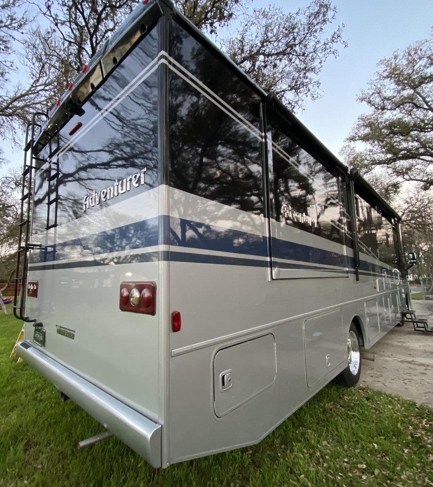 This motorhome has a rebuilt title due to exterior damage on the rear side that was repaired.
