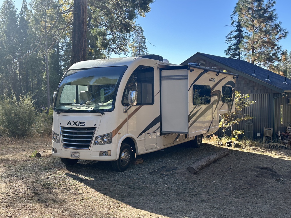 The 2021 Thor Motor Coach Axis 25.6 is a Class A motorhome designed for those who seek adventure in a smaller Class A motorhome without the hassle of driving a full-sized one. It is extremely easy to drive with the side and rear cameras and the aftermarket steering stabilizer we installed. With only 35,726 miles on the odometer, this RV is practically brand new and well-taken-care-of. It can sleep 6: two in the bedroom, two by folding down the dining room table, and two above the driver and passenger side captain's chairs. The front seats are extremely comfortable for driving and lounging. The shower is a very comfortable size to take a "real" shower in.The following aftermarket parts have been added, making it much safer and more convenient than its stock design:Upgraded steering stabilizer, which made it track so much better than without it.Bigfoot self-leveling kit. Park, then activate the automatic levelers, and in minutes it is perfectly level. You never want to extend a slide-out without them!Satellite installed for Dish NetworkMaintenance:Roof has been weatherized recently. Never had any issues with leaking due to proper care.It is well-maintained with all its recommended services completed.Factory Information: 2021 Thor Axis Model: XS25.6-21 Chassis: 2021 FD E450 14.5K 158 16 0455615Interior: Estate GreyCabinetry: Ivory CoastExterior: Sanibel (Oyster) HD-MaxElectric Stabilizing System Home CollectionFrameless Windows Power Drivers SeatTouch Screen Dash Radio w/Back-up Monitor & Camera100W Solar Charging System w/Power ControllerHolding Tanks w/Heat Pads**Heated, Remote Ext Mirrors w/side CamerasSiriusXM® Tuner and AntennaReclining/Swivel Captain's ChairsStow-Away Coffee TableStainless Steel Wheel LinersValve Stem Extenders on Rear WheelsFront Electric Drop-Down Over Head BunkLeatherette Dream Dinette BoothWindow Privacy Roller ShadesDouble Door LP Refrigerator2 Burner Cooktop w/Glass Cover & Elec startConvection MicrowaveFlip-up Countertop ExtensionCeiling Vent in Kitchen 12V w/SwitchQueen-Sized BedBedroom USB Charging Station12V Outlet in Bedroom for CPAP Machine12V Attic Fan in Bedroom39" TV in Living Area32" TV in BedroomOnan RV QG 4000 Gas GeneratorRapid Camp+TM Multiplex Wiring Control SysWinegard ConnecTTM WiFi/4G/TV Antenna15,000 BTU Roof A/C (Front)Second Auxiliary BatteryTankless Water HeaterOutside ShowerExterior LP ConnectionBlack Tank Flush System