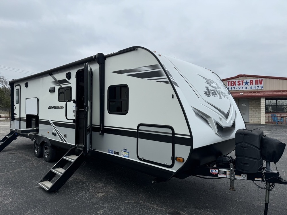I have a super clean 2021 Jayco Jayfeather 27BHB for sale. This is a 33ft all aluminum framed smooth fiberglass sided 4 seasons travel trailer with bunks and a super slide that weights just 6,500lbs. This rig is fully equipped. It features a power front jack, a large electric patio awning, an outside kitchen, rear ladder, Goodyear tires and much more. Inside the amenities continues. It features dual rooftop A/C’s, a private master suite , a dinette and a sofa that both make beds, a full kitchen with a oversized double door refrigerator , Stereo with outside speakers, LED TV, double over double bunks rated for 600lbs and a fully enclosed private bathroom with two door entry. Everything works like it should and financing is available. Tex Star RV Azle