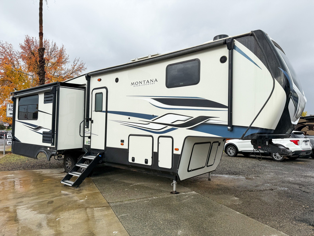 2022 KEYSTONE MONTANA 281CK! GREAT SIZE...32' OVERALL, 11K LBS DRY AND 14K LOADED. LIKE NEW, AUTO LEVLERS, 2 A/Cs, 50 AMP POWER, 200 AMP SOLAR, SATELITTE SYSTEM, PASS-THROUGH STORAGE, 4 SEASON PACKAGE AND POWER AWNING. L-SHAPE SOFA, FIREPLACE, WRAP AROUND KITCHEN WITH BREAKFAST BAR AND 4 DOOR FRIDGE FREEZER. KING BED, GLASS SHOWER, FRONT WINDOW AND LED LIGHTS. ONLY $44,885 FINANCING AVAILABLE AND TRADE-INS WELCOME! 916-747-1936