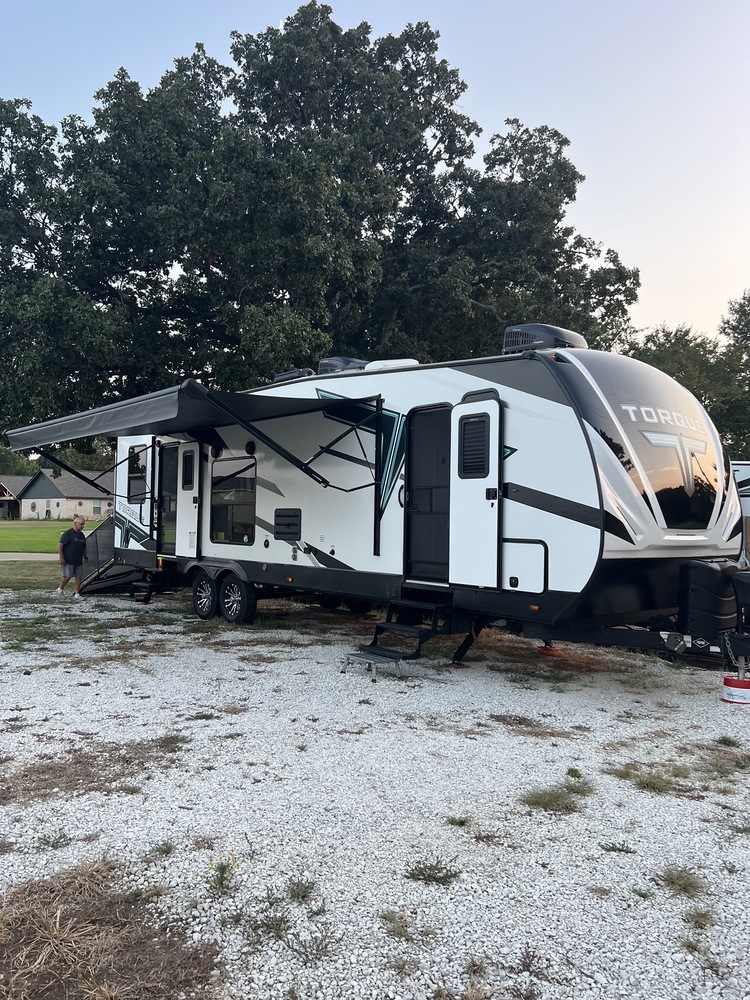 Like new 2022 Heartland Torque T285 toy hauler 36’, sleeps up to 7. No scratches or dings. Barely used… just too big for the 2 of us. Has 4000-watt Onan Generator and solar for your off grid adventurous style camping. Has king bed in private bedroom and queen bunks in the back, plus a sofa bed. There's a full kitchen with 3 burner stove, oven and microwave, and a good-sized pantry. Refrigerator runs on gas or electric. Lots of storage inside and out. Bedroom has separate entry for total of 2 entry doors plus patio/ramp door for easy loading of all your toys (golf cart, ATV, bikes, motorcycle, etc.), and converts into a nice, elevated patio area for over-looking your surroundings. Check it out. you will be pleasantly surprised!