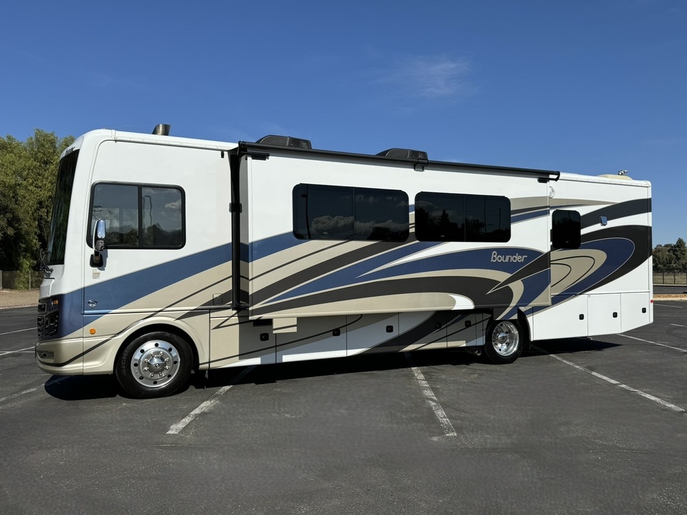2022 Fleetwood Bounder 35K Double Slide Outs Bath and Half King Bed Washer/Dryer Full Body Paint 18K Miles**124,990*** Ford®Chassis 7.3L, 350HP Engine 468 lb/ft Torque w/6 Speed Torq-Shift® Automatic Transmission w/Overdrive & Tow/Haul Mode, Onan Quiet Gas 5.5kw Generator, Inverter, Automatic Hydraulic Levelers, Color Side and Rear Cameras, Private Bedroom with Slide-Out and King Size Bed, 32" HD Led Flatscreen TV, Wardrobe Closet with Mirrored Door, One Unit Washer/Dryer in Bedroom, Built in Headboard, Nightstands, & Drawers, Private Rear Full Bath with Porcelain Toilet, Large Vanity/Sink and Oversized Walk-In Shower with Sitting Bench and Glass Enclosure, Power Vent, Mid-Coach Private Half Bath with Porcelain Toilet and Vanity/Sink, Residential 3 Door Stainless Fridge, Spacious Kitchen, Solid Surface Countertops with Matching Sink and Stove Covers, Insignia Residential Size Microwave, Beautiful Tile Backsplash, Stove & Oven, Drivers Side Super-Slide with Ultra-Leather Reclining Chairs and Ultra-Leather Convertible Booth Dinette, Passenger Side Mid-Coach Entertainment Center with Led Flatscreen TV and Electric Fireplace, Front Power Queen-Size Loft Bed, Dual Pane Windows, MCD Roller Day/Nite Shades Throughout, Sleeps 6, Beautiful Flooring Throughout Living Areas, English Chestnut Wood Cabinetry and Brushed Nickel Hardware, Ultra-Leather Swivel/Recline Captains Chairs, Stereo, Power Sun Visor, One Piece Windshield, Large Power Patio Awning with Alumiguard and Integrated Led Lighting, Full Basement Storage with Side Opening Doors and Pass-Thru, Outside Entertainment Center with Flatscreen Led TV, Dual Ducted Roof Airs, Heat Pump, 10 Gallon Gas/Electric Water Heater, 100 Gallons Fresh Water, 50 Amp Service with Power Cord Reel, High Gloss Full Body Paint, Tow Package, 22.5" Polished Aluminum Wheels, Absolutely Great Looking and High Quality Large-Chassis Class A Coach, Gently and Just Arrived, Other Models Available and More Arriving Soon, Custom Orders Available 18K Miles, *** Our Discounted Price is $124,990*** We have some fantastic financing and take trades also! It is our #1 goal that your experience with our company is an enjoyable one with our staff of industry professionals, Conejo Wholesale Auto & RV, Exclusive Ventura County Dealer For Winnebago Navion, Revel, Solis, Ekko, and Travato, All Storyteller Products, Outside Van Syncline and Approach, Tiffin GH1, All Roadtrek Products, We Also Carry Some Quality Pre-Owned Motorhomes which come with Our 45 Day/1000 Mile In-House Warranty at No Charge, Conejo RV, 661 E. Thousand Oaks Blvd, Thousand Oaks, CA 91360, 805-496-8700, www.ConejoRV.com Open 7 Days, 9am to 6pm, All Coaches Fully Inspected, Serviced and Detailed, Come Experience the No Pressure No Haggle Sales Approach at Conejo RV, We Also Buy Clean Late Model Coaches, 1 Year Free Camping Membership Included Ask For Details! (***plus tax & license fees***)