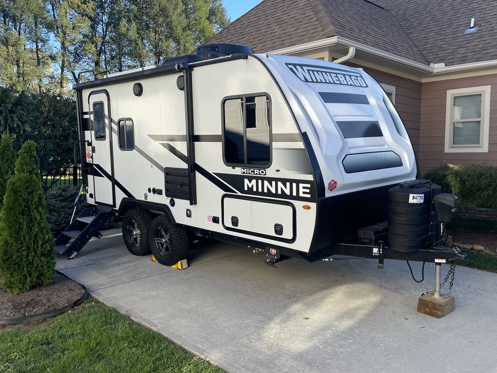 2023 Winnebago Micro Minnie 1808 FBS, 20 length, excellent condition, barely used. Front queen bed floor plan with dinette slide-out, open galley, large corner bathroom. Features include large refrigerator, wireless cell phone charger, smart TV/JBL speakers, A/C, 200w solar panel battery charger, 4 electric stabilizer jacks, and extended season with tank heaters. $3,200 in extras including sway bar, dual batteries, slide topper, custom hitch, wireless brake controller and 10” memory foam mattress.