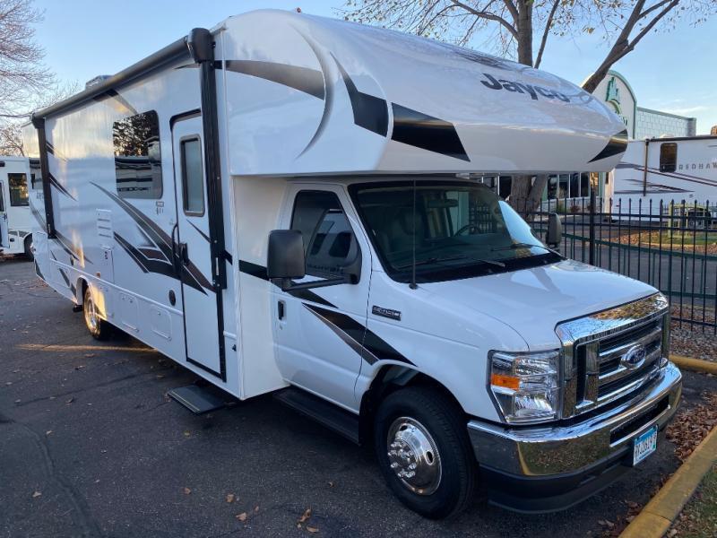 Each Jayco Redhawk Class C gas motorhome includes the JRIDE® system that features a computer-balanced driveshaft, standard front and rear stabilizer bars, Hellwig helper springs, and rubber isolation body mounts to absorb road shock, dampen noise and minimize vibrations. The cab offers a Sony® infotainment center with Apple CarPlay and Android Auto, backup and side-view cameras for safety and easier parking, and a tire pressure monitoring system. inside you will love the headroom with a 7-foot ceiling height, the LED-lit pressed countertops and decorative kitchen backsplash, plus the stainless steel bathroom sink when it is time to clean up. Looking for value, technology and comfort, choose your favorite Redhawk today!