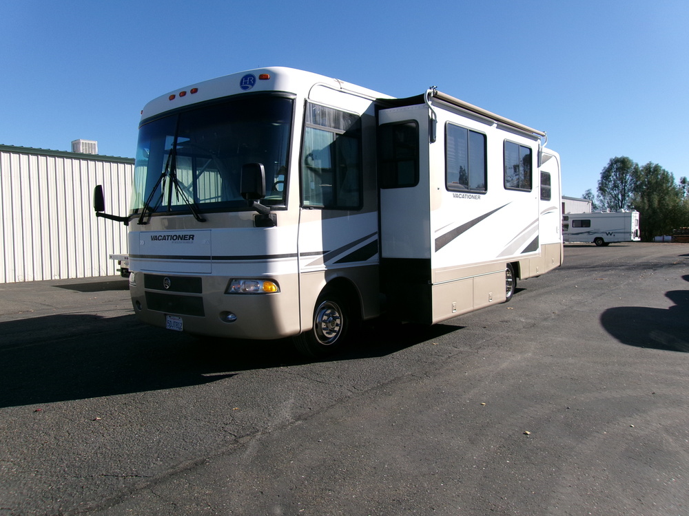 THIS 2002 HOLIDAY RAMBLER VACATIONER 32PBD 2 SLIDE MOTORHOME IS IN EXCELLENT CONDITION. THE VACATIONER IS EQUIPPED WITH THE TRITON V10 MOTOR, 2 SLIDES WITH TOPPERS, 2 TV'S, SLEEPS 4, WALK AROUND QUEEN BED, WASHER/DRYER HOOKUPS, SWIVEL CAPTAINS CHAIRS, BACKUP CAMERA, AWNING, AND MUCH MORE!!