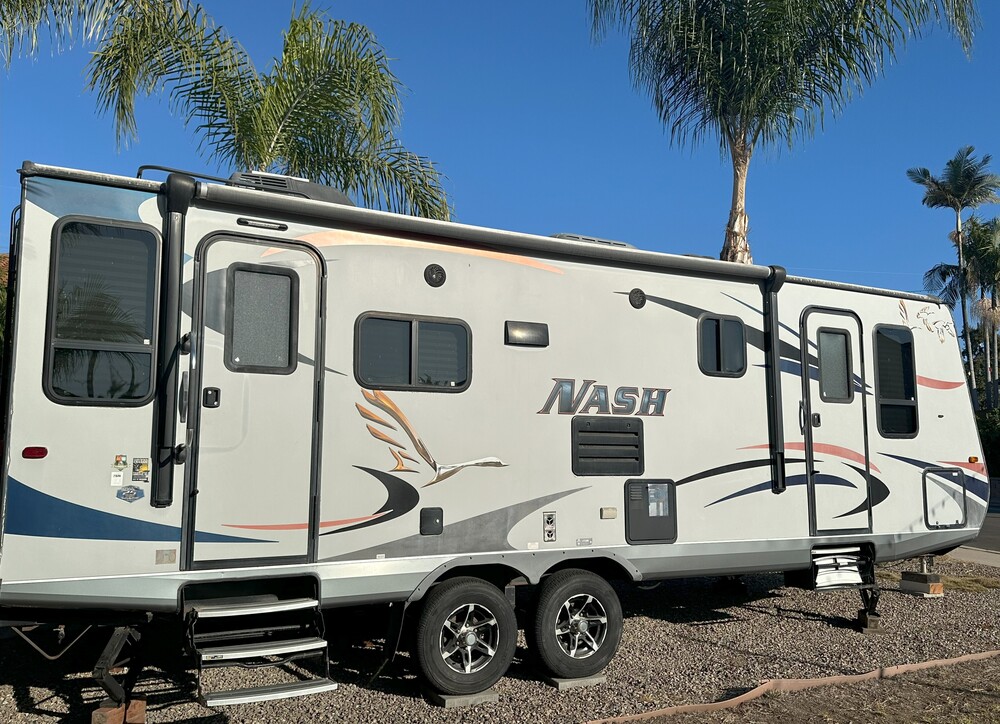 4 Season trailer with "Rear Window living" and double pane windowsFront Queen master with upgraded mattress, underbed storageSleeps 61 power retractable slide outPower retractable awningIncludes tow hitch, sway bars and stabilizersNew Interstate batteries, New smoke/carbon monoxide detectorsCustom cabinet detailBooth dinette, center kitchen, 3 burner stove, microwave, mid-size refrigeratorAll original manuals includedThe 2018 Northwood Mfg Nash 26N has a spacious layout with large windows, 3 ceiling vents with fans; solar panel, lots of storage options including overhead cabinets, under-bed storage, and a wardrobe closetThe bathroom is a walk-through layout with a skylight in the shower See link below for more details: