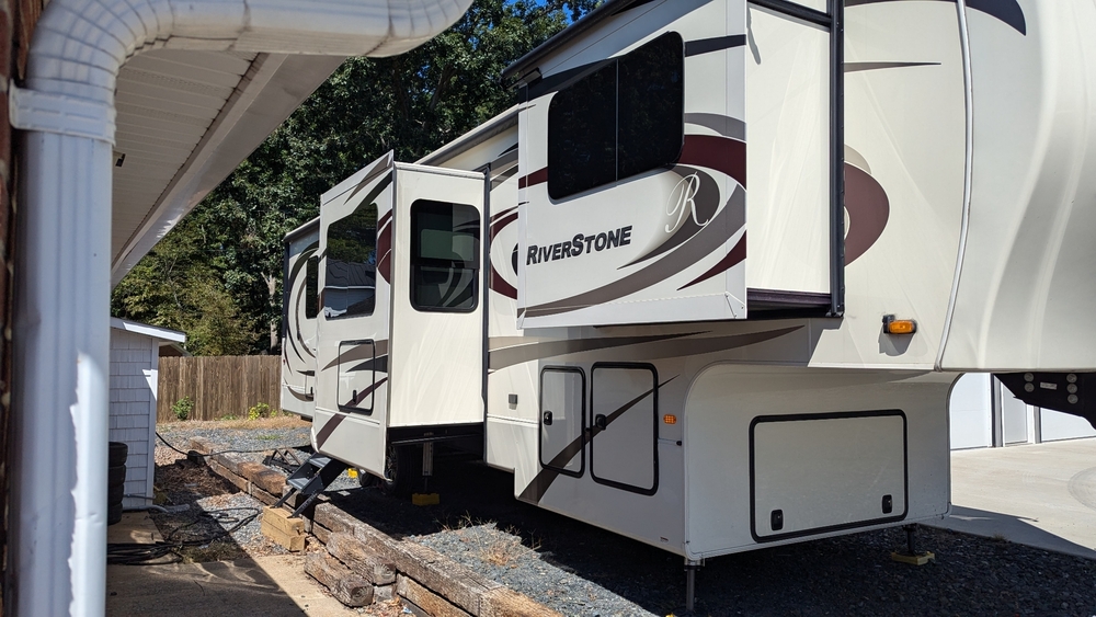 For Sale or Trade. 2020 RBFL Forest River Riverstone Front Livingroom with Rear Bedroom. Kept in storage most of its life, this luxury 5th wheel is just like new! Front living room - "Sky Lounge" with front window, two opposing couches that fold out to become beds, two recliners that are heated, vibrating chairs with accent lighting. Large pop up tv and storage with a huge fireplace. The kitchen has residential fridge and large freezer, dishwasher and island sink. Nearby is a half bath with a washer and dryer. As you step in the rear, you will find a huge king bed, fireplace with tv above it. A ful l bath in the rear with lots of privacy. Outside you find an amazing color combination, outdoor entertainment center and lots of storage space. It also has its own built in on board generator. Of course it has automatic leveling jacks, return to hookup mode, and lots of storage. I am the second owner and purchased to put on a site for vacationing, but we bought a house near the spot and no longer need the 5th wheel. Seriously, it is one of the nicest you will find. 69950 is a great price for such a luxury 5th Wheel. Call or text me at 828.406.1633 with any questions or interest. Thanks