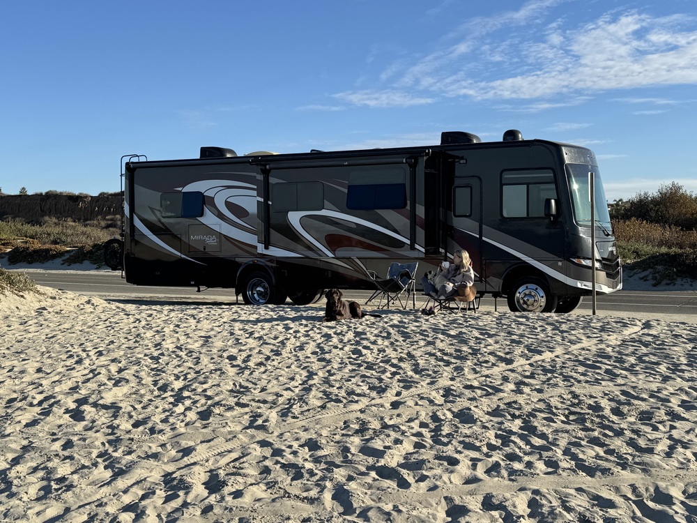 2017 Coachmen Mirada Select 37SB. Top of the line Tier 4 luxury gas RV with upgraded finishes and features throughout. Less than 15k miles, trouble-free and very well maintained. All leather is new from original factory supplier with upgraded materials. Beautiful full body paint. Great floorplan with outdoor kitchen, 3 slides, and opposing slides in living room with cozy fireplace. Includes a combo washer/dryer, dual AC, very quiet ONAN generator, 1000w inverter, 4 Samsung TVs, full size residential refrigerator with door ice/water, convection microwave oven, solid surface countertop, solar, expanded house batteries, one-piece fiberglass roof, dual awnings with LED lights, power steps, auto leveling, 3 cameras, aluminum slam-latch doors, dual pane windows, Apple CarPlay, day/night shades, recent tires and service. Runs like new, needs nothing, just completed 6000 mile cross-country adventure this summer. $79,950