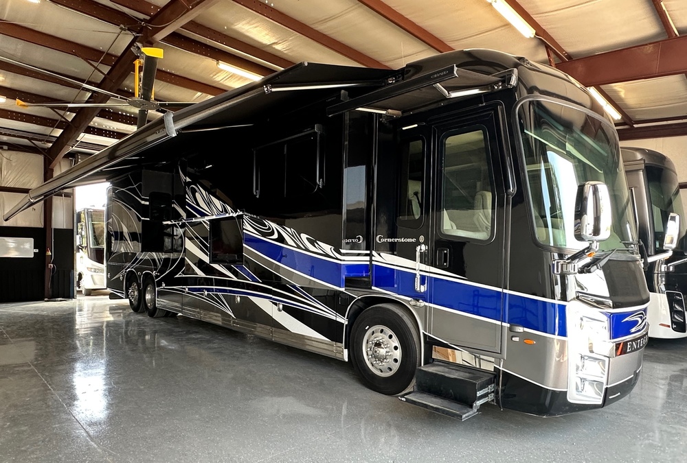 CONSIGNMENT - 2019 ENTEGRA CORNERSTONE 45W BATH AND ½ W/ 605HP CUMMINS, 20K TOW CAPACITY, AND RECENTLY SERVICED…
