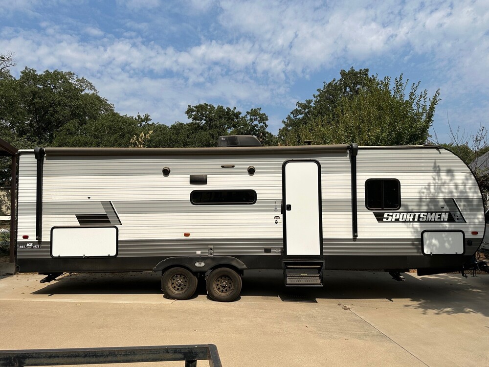 Excellent condition/like new. Kept under cover since purchase. Used approximately 8 times. Everything works as designed. No leaks. Lippert power tongue jack. Upgraded memory foam queen mattress. Also comes with Rhino 28 gallon portable wastewater tank as well as sway bars and hitch. 31 ft. Dry Weight - 5,670. GVWR - 7,000. Hitch Weight - 590. Bunk beds. 2 propane tanks with gauges. Outdoor griddle and fridge. 19 ft awning. Serious inquires only.