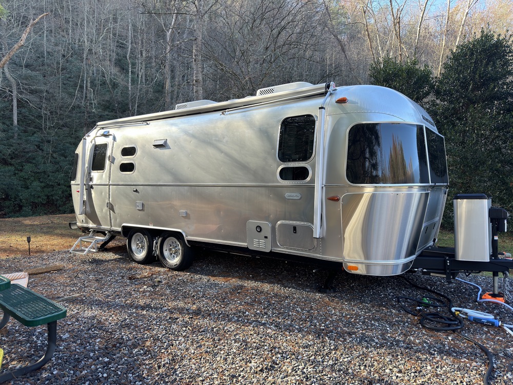 2023 Airstream Globetrotter 25FB Twin Travel TrailerHighlights: Twin Beds | L-Shaped Lounge | Separated Bathroom | Seamless Composite Flooring | Exterior ShowerThe 2023 Airstream Globetrotter 25FB Twin offers the perfect balance of style, comfort, and functionality, making it your ideal home away from home. The spacious L-shaped lounge provides a cozy space for meals, games, or extra sleeping room for guests. The ultra-modern kitchen features a stainless steel three-burner cooktop, Baraldi vent, 6.8 cu. ft. refrigerator, and a deep stainless steel Moen sink, all set against bright DuPont Corian countertops that maximize light reflection and include built-in storage bins.Up front, you'll find twin beds with AdaptaFlex memory foam mattresses for a restful sleep, plus an LED TV for entertainment. The separated bathroom offers privacy and convenience, with a shower featuring a built-in seat, a private toilet, and a vanity, allowing two people to freshen up at once.The Airstream Globetrotter 25FB Twin is built for durability with a structural frame and high-quality fabrics designed to last a lifetime. Inspired by European design and American craftsmanship, this travel trailer boasts minimalist elegance with crisp, clean lines, soft curves, and panoramic windows. The HITCH seating upholstery features a fine woven texture and a subtle two-tone metallic print, while its durable, stain-resistant fabric ensures lasting beauty.With USB and 110V outlets strategically placed throughout, staying charged is easy. The QuietStream ducted A/C system cools efficiently and includes a heat pump to regulate temperature. For ultimate convenience, there's also an exterior shower for cleaning off after outdoor adventures.