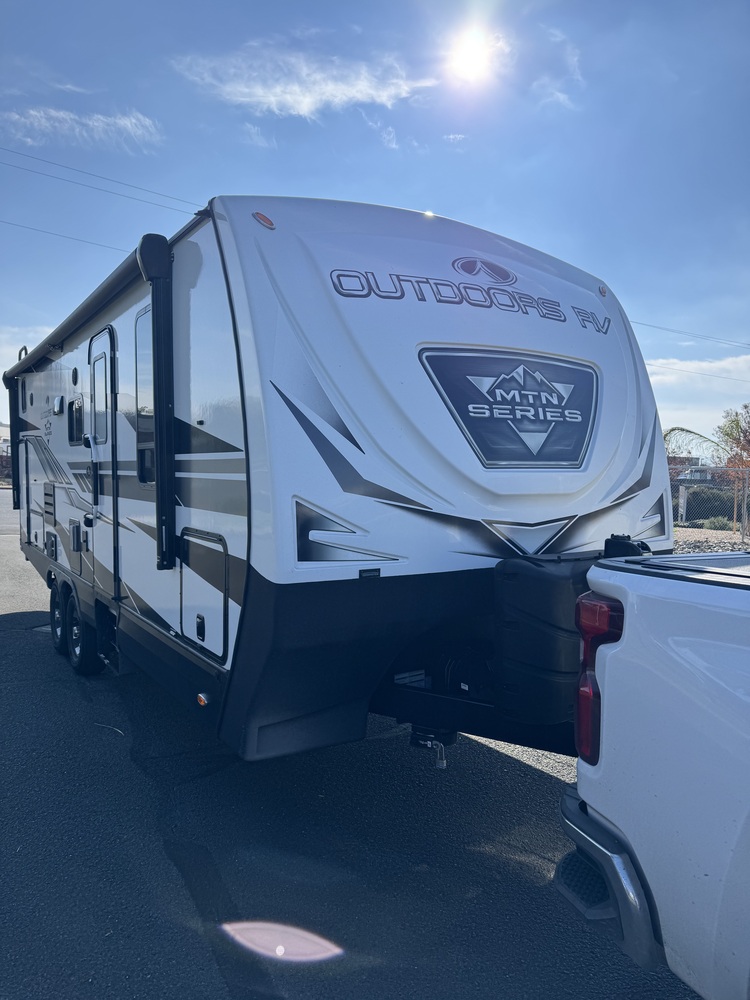 Brand New 2023 Outdoors camper. We bought this new in October 2024 from River City RV, but after one trip, we realize we need a bigger camper. The camper has only been used once, for a trip to Tahoe. Everything is perfect, just not big enough for our family. The camper comes with an extended, transferable warranty by RVGard (Caregard Warranty Services, Platinum coverage) which expires 10/20/2029. This is a 23' camper, which is about 27' tongue to bumper. Stabilizers included.