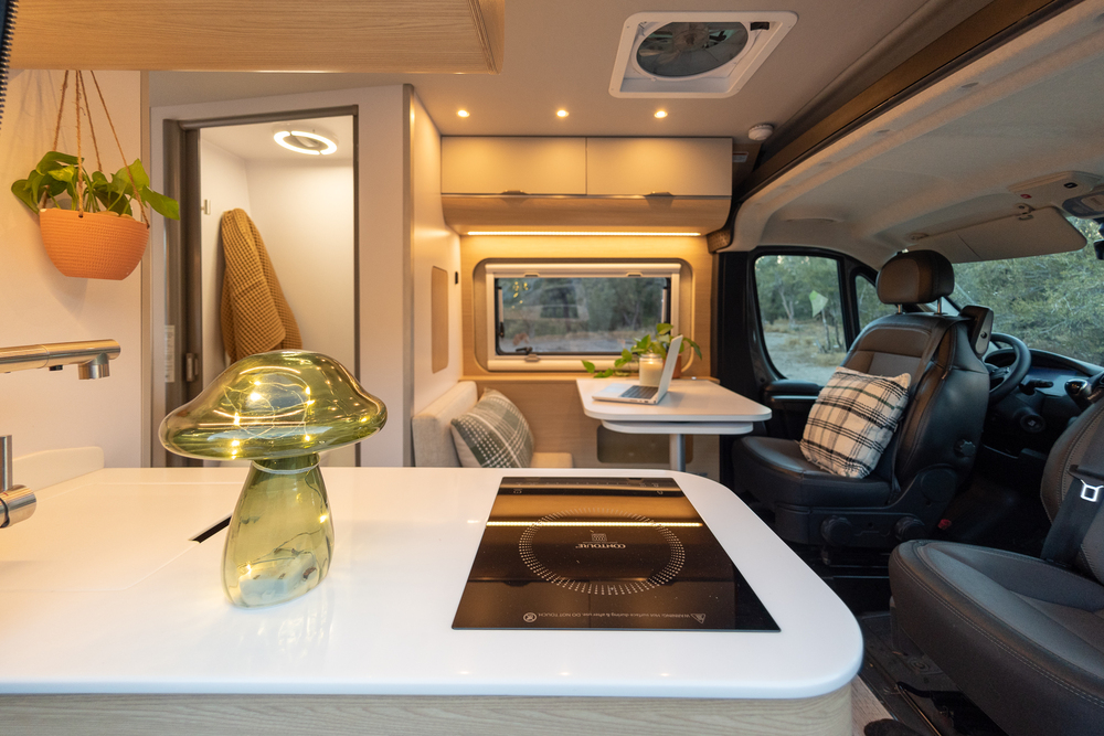 Powered by a robust 660Ah Lithionics lithium battery, an ACR Charger 150A (to charge directly from the engine), and a 400W Solar system, this camper van is the perfect home for full-time living and remote working, without sacrificing comfort and style.
