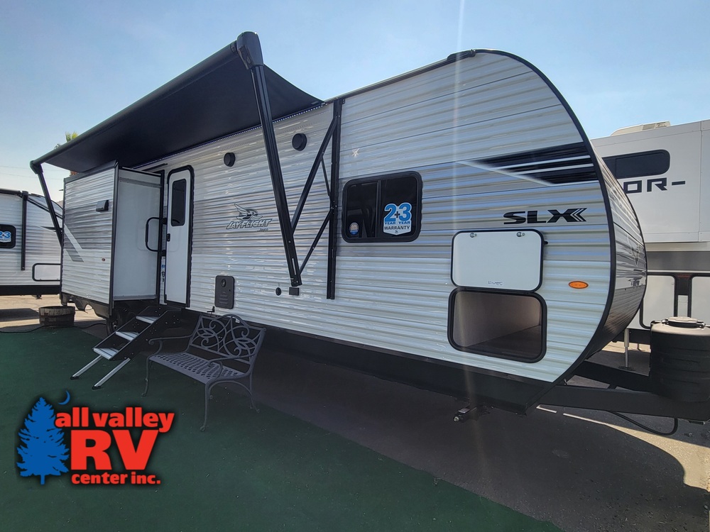 Ready to explore the RV lifestyle? The Jay Flight SLX Travel Trailer has everything you need, in a compact package. With both single and double axle floorplan options, this RV offers a variety of sizes, with all of the standard amenities you've grown to love from Jayco. The Jay Flight SLX boasts an oversized freshwater tank—30-gallons for the single axle floorplans and 52-gallons for double axle SLX models (roughly 25 percent bigger than the competition). These tanks are supported by large, oversized steel bars screwed to the frame, unlike the aluminum straps you'll find elsewhere.