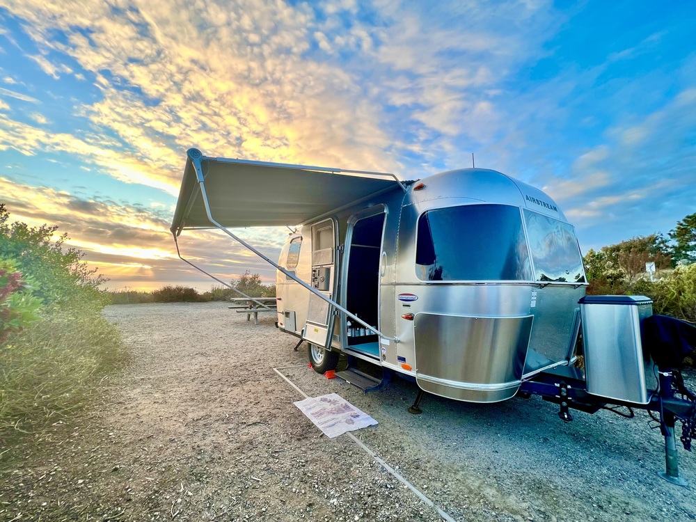 We have used it two times for one-week trips (Owens Valley and Central Coast) and for one weekend trip (Crystal Cove SP). This is our first Airstream and we fell in love with it, though we decided we would rather own a larger one and have now purchased a 23 model. After purchasing it, we replaced the tires (incl spare) with Goodyear Endurance and upgraded the rooftop AC unit from the horribly loud original to an ultra-quiet RecPro unit. This new AC is awesome do a little research if you aren't familiar with the upgrade. Its quiet enough to have a normal conversation while its running, includes the heat pump function so you dont have to use the loud propane furnace, and includes a soft start so you can run it off a small generator when shore power isn't available. The trailer also has the full awning package. If you ever camp in summer heat, you will really appreciate how much cooler the interior stays when the awnings are deployed.