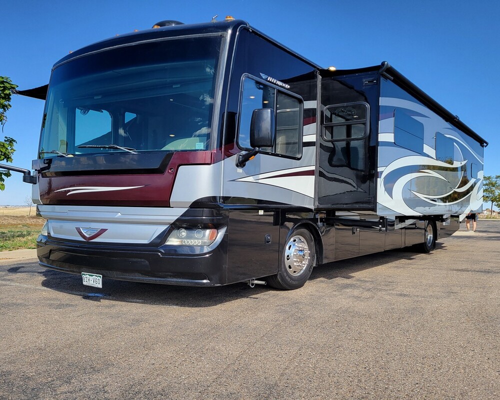 2017 Fleetwood Pace Arrow 38K LXE Class A Diesel RV for Sale in Denver. Bath and a Half Floor Plan! Cummins ISB 6.7L 340 HP Diesel Motor with 39,000 Miles and 700 ft. lbs. of Torque Plus Exhaust Brake, 6-Speed MH 2500 Allison Auto Transmission, Freightliner Power Bridge Chassis with (2) Pass Through Storage Compartments and Pull-Out Slide Storage Tray. 8K Onan Generator with 742 Hrs., (4) Pro Master 6V Deep Cycle House Batteries (2019) and (2) New Chassis Batteries Installed 1 Month Ago! Michelin XZA3 Size 275/80R/22.5 DOT 42/15 in Good Condition, Power Hydraulic Leveling System, Power Reel 50-AMP Shore Power, 3-Power Slides Outs, Stacker Washer/Dryer, Electric Fireplace, (2) Quiet Cool Low Profile Ducted AC Units with Bedroom Heat Pumps, Central Vacuum System, 10’8” Power Patio Awning and Power Entry Awning, 2,000-Watt Inverter plus Surge Guard Protector, Voltage Regulator and 120V/12V AC/DC Converter. 10K Tow Capacity with Road Master Tow Hitch Included in Sale. The Owners have a 2016 Chevy 4-Door Equinox XLT Tow Car with less thean76,000 Miles and Newer Michelin Defender Tires (DOT 2022) They Would Like to Sell with the RV. Listed Price Does NOT Include the Car! Please Watch Our Video!