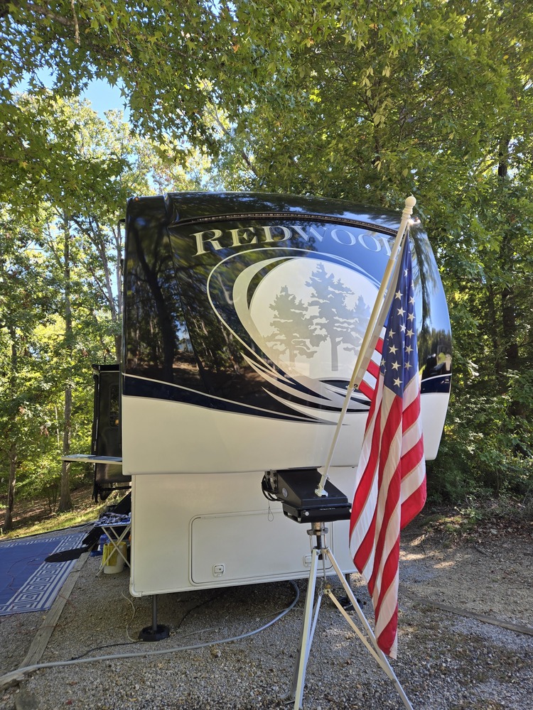 This one owner Redwood 3901WB features top-of-the-line amenities. Kitchen appliances include stainless steel residential refrigerator with 2 drawer freezer and ice maker, Furrion 3 burner stove and oven, convection microwave and it's exhaust vent vents to the outside. There is a Maxx fan with rain sensor and a roof mounted cover in the kitchen area. The large island with large stainless steel sink has covers that can be installed to almost double the counter/food prep area. A wet bar includes an under-countertop beverage refrigerator. Dining area has an extendable pullout table which allows comfortable seating for 4 adults. Living area has power leather theater chairs and leather queen size hide-a-bed couch. The 50 inch tv is mounted on a swivel for ease of watching and for access to the 2 storage shelves behind the TV. There is a built-in sound bar. A remote-controlled electric fireplace has a high and low heat setting. The coach is equipped with LED lighting, USB ports and 115/120V outlets throughout the camper. There is an abundance of under counter and overhead storage cabinets in the kitchen, dining and living room. The bedroom has a king size bed. The head of the bed can be raised electrically for reading, watching TV and storage. There is a 40 inch smart TV in the bedroom above dresser between 2 overhead cabinets. The dresser has 6 drawers and there are 2 additional drawers under the bed with a safe in the right drawer. The front bathroom has a full-length LIGHTED mirror above the larger vanity. There are 2 sinks in the vanity, 2 under counter cabinets at each end and 4 drawers in the middle. A very large shower with seat and sliding glass doors. A Maxx Fan in bath with rain sensor and roof mounted cover. The toilet is made of porcelain and is foot operated. The Walk-in closet is located in the nose of the camper and has shelves and wall to wall hanging. The washer/dryer hookup is in the closet. Pocket doors separate the living area from the bedroom and also the bathroom from the bedroom. There is a large external pass-through storage cabinet under the bedroom. The front outside cabinet under the 5th wheel area has been generator Prepped. Upgrades to base model include, Slide toppers on all slides, a second (rear) awning, 3rd air conditioner, 2 Maxx fan roof covers, 7 new MCD day/night roller shades in living area, 4 brand new Continental P215 75R 17.5 H Rated tires and dual pane windows. This camper is in like new condition. It has never been smoked in, not used for full time living and never rented. The roof is clean and in very good condition. I have winterized it for the season.