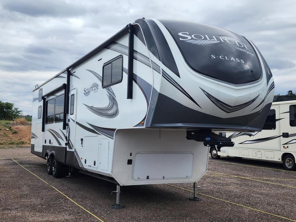 The 2021 Grand Design Solitude S-Class 3950BH is a luxurious fifth wheel trailer designed for those who enjoy the finer things in life. This spacious and well-appointed RV offers all the comforts of home while on the road. The exterior features a sleek and modern design, with attention to detail evident in every corner. The 3950BH model boasts ample living space, with multiple slide-outs to maximize interior room. Inside, the Solitude S-Class is outfitted with high-quality materials and finishes throughout. The living area is perfect for entertaining, with a comfortable sofa and theater seating. The kitchen is a chef's dream, with state-of-the-art appliances and plenty of counter space. The master suite is a true retreat, with a king-size bed and ample storage. The bunkhouse is perfect for accommodating additional guests or children.The Solitude S-Class is equipped with all the latest technology, including a premium sound system and smart home features. This fifth wheel is also designed with safety in mind, with features such as advanced braking systems and stability control.Overall, the 2021 Grand Design Solitude S-Class 3950BH is a top-of-the-line fifth wheel trailer that offers unrivaled luxury and comfort on the road. Whether you're planning a weekend getaway or an extended road trip, this RV is sure to make every journey a memorable one.