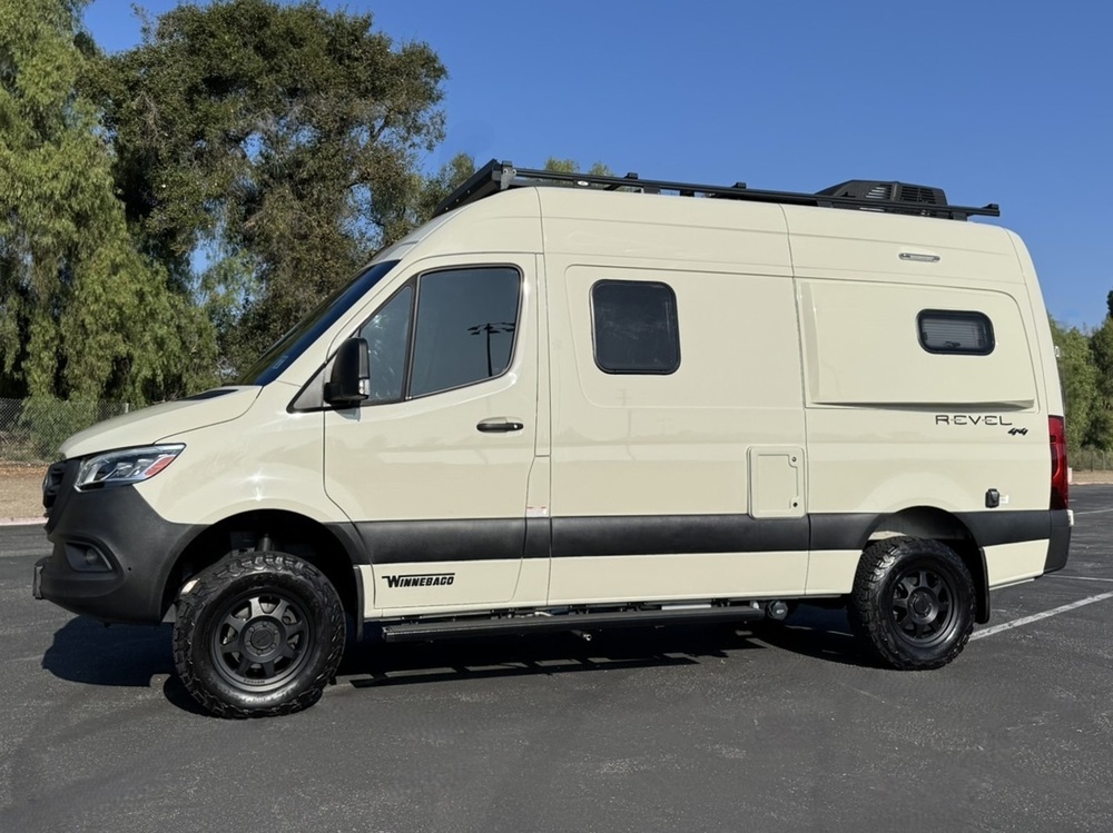 2021 Winnebago Revel 44E 4X4 Sprinter Mercedes Turbo Diesel Lithium Batteries 13K Miles *** Only 119,990*** Fully Featured Four Wheel Drive Mercedes Chassis, 3.0L 6-Cylinder, 188-hp, Diesel Engine, 7G-Tronic Automatic Transmission, 220-amp. Alternator, Under hood Generator, On-demand 4WD w/Low Range Electronic Stability and Traction Control, 4-Wheel ABS Brakes, Solar Panel/Battery Chargers, Inverter, Control Panel Above Dinette, Dual Lithium Batteries With Built In Heater, Rear Bedroom with Power Lift Bed Flex Bed System, Under Bed Storage Pockets, Under-Bed Storage with 6 Removable Cargo Tie-Down Anchors, Flexible Showerhead, Wet Bath 31"x26", 2 Removable Shelves Convert to Wet Storage Cabinet, Removable Clothes Hanger, Swiveling Cassette Toilet, Stowable Single Burner Induction Stove Top, Larger 3.0 cu. ft. Compressor Driven Refrigerator/Freezer, Stowable Counter Top Extension, Pantry, Fold-Down Exterior Table Design, Pedestal Dinning Table With 3 Point Seat Belt, Tinted Dual-Pane Euro Acrylic Windows, Radio/Rearview Monitor System 10" LCD Color Touch Screen, Bluetooth/Nav/Apps/Media, Color Rear Camera, Cab Seats Slide/Swivel/Recline, Dual Airbags, Cruise Control, 12-volt Powerpoints, Folding Privacy Screens For Cab Door Windows, Keyless Entry with Remote, Trailer Hitch 5,000-lb. Drawbar/500-lb. Maximum Vertical Tongue Weight, Side Screen Door, Rear Screen Door, Powered Patio Awning With Bluetooth Controls, Porch Light with Interior Switch, Running Boards with Ground Effect Lighting & Rocker Trim with Mud Guard, Rear Mud Guards, Method Wheels With BFG KO2 All Terrain Tires, Movable Ladder, Luggage Rack, Hydronic Heating System, Roof Air Conditioner, TrueLevel™ Holding Tank Monitoring System, On-Demand Water Pump, Heated Gray Water Holding Tank, Insulated/Heated Fresh Water Tank, This Is An Awesome FOUR WHEEL DRIVE Sprinter For The Adventurer In You! ***$119,990*** We have some fantastic financing and take trades also! It is our #1 goal that your experience with our company is an enjoyable one with our staff of industry professionals, Conejo Wholesale Auto & RV, Exclusive Ventura County Dealer For Winnebago Navion, Revel 4x4, Solis, Boldt, Ekko, and Era, Dynamax Isata, Force and DX-3, Storyteller Mode 4x4, Midwest Automotive Designs Dealer, Roadtrek Dealer Of Zion & Agile, We Also Carry a Large Selection of Quality Pre-Owned Motorhomes which come with Our 45 Day/1000 Mile In-House Warranty at No Charge, Conejo RV, 661 E. Thousand Oaks Blvd, Thousand Oaks, CA 91360, 805-496-8700, www.ConejoRV.com Open 7 Days, 9am to 6pm, All Coaches Fully Inspected, Serviced and Detailed, Come Experience the No Pressure No Haggle Sales Approach at Conejo RV, We Also Buy Clean Late Model Coaches, 1 Year Free Camping Membership Included Ask For Details! (***plus tax & license fees***)