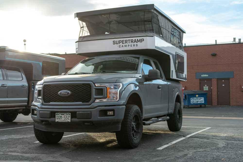 The truck is set up perfectly to handle the camper thanks to the Alcan Springs custom leaf pack. It handles like a dream on and off the highway, and the twin-turbo 2.7L EcoBoost keeps things zippy and powerful no matter your elevation. Loading and unloading the camper is a breeze, thanks to our proprietary tie-down system pre-installed on the F-150. Truck comes with factory tailgate, and the back-up camera is wired to the factory harness when the camper is loaded.