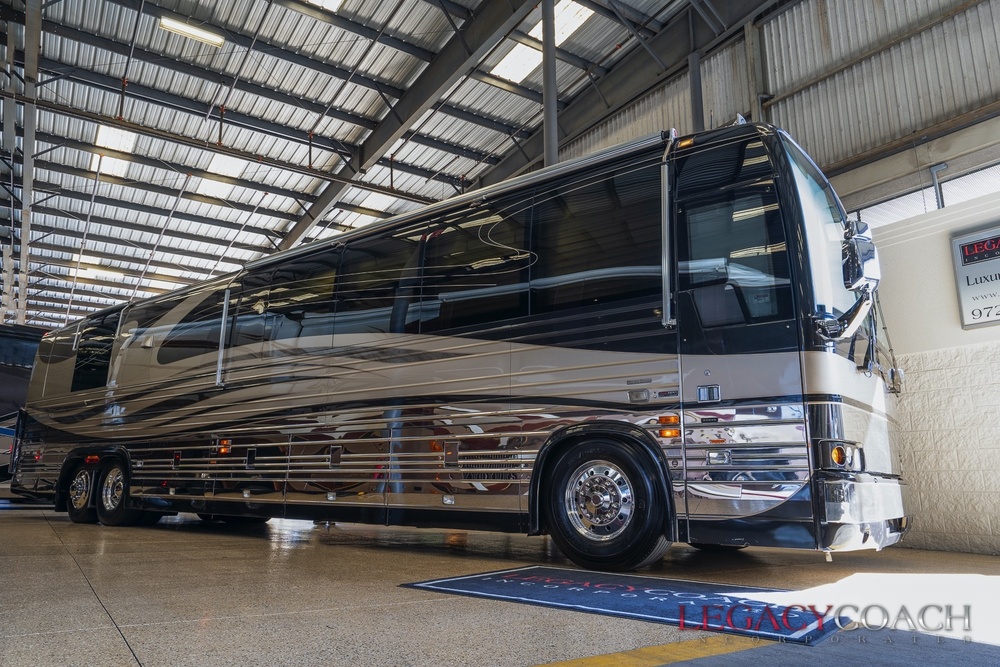 LEGACY COACH represents only the finest luxury coaches and invites you to view our current inventory at our Dallas area indoor showroom. For a full photo tour and specifications of this coach as well as others, visit us online at www.legacycoach.com. All trades welcome. Shown by appointment. For more information or to schedule your personal showing, please contact James Thompson at Legacy Coach. Office: 972-771-5900. Cell: 214-893-8471