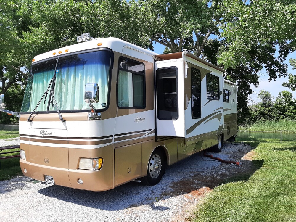 2003 Monaco Diplomat 36' PST- 3 Slides - Cummins® ISC 330 Engine with Allison® MH 6-Speed World Transmission and Electronic Shifter - 51,500 miles. Runs good. Roadmaster Chassis - air ride - Roadmaster Tow Bar Included. Roadmaster Steering Stabilizer installed. Onan 7500 diesel generator with only 303 hours on it. Electrical Management System w/ Smart Surge Protection installed. All electrical systems work, all water management and plumbing systems work, Girard On-Demand Water Heater. Twin Propane Furnaces. Two 1350btu a/c units replaced with 1500btu A/C heat-pump units. Michelin tires with 9000 miles, purchased 5/28/2018. All interior fixtures and handles were upgraded. All lighting fixtures were upgraded to LEDs. New Porcelain Toilet installed. Sirius Satellite Radio. Dish Network Roof-mount Satellite Dish and Wally Tuner. Known issues: Refrigerator does not work (needs fixing or replacement with a residential unit). The chassis a/c needs charging. Some dash gauges have wiring issues (gauges are replaced by Bluefire Digital Dashboard, see pics). The awning needs repair. Driver Windshield has a crack off to the side. All issues are adjusted for in the price. All manual and service records are included. Clear title. Need to sell due to health issues. Only serious buyers need inquire. $29000 OBO.