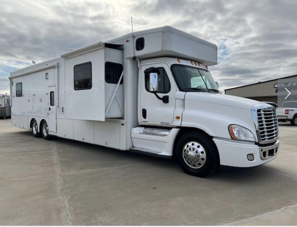 2009 NRC Cascadia Dual Slide Coach, DD-15 Detroit, 560HP, Automatic, Tan Leather, Dual Sleeper Sofas, Sleeper Bunk Over Cab, Big Flat Screens, Satellite, A/C, Heat, Power Awning, Big Diesel Generator W/Auto Start, Outside Grille, Outside Refrigerator, 4 Corner Auto Leveling, Big Inverter, Back-Up Camera, Side By Side Stainless Residential Refrigerator/Freezer, Dark Cherry Woodwork, Stereo, Queen Bed in Master Bedroom, Mid Bath Floor Plan, Tile Floors, Corian Countertops, Central Vacuum, 40K Hitch, Glad Hands, Coach has Many Many Options. For additional information and pricing please call Richard Freeman 405-640-2366 or Michael Brotherton 214-202-0884 or Royce Lee Freeman 405-831-9594 or Erica Enders 713-299-7598 or Alan Cape 573-259-0666 Elite Motorsports, LLC