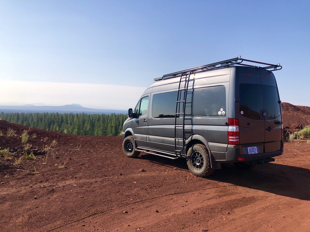 Details: 144 wheelbase (length = 19.5 feet bumper to bumper; 10.5 feet of interior length from behind the driver/passenger seats to the back doors) High Interior Ceiling Roof (64) o Full Height = ~ 9.5 Swivel Captain Passenger Seat Heated Driver and Passenger Seats Upgraded Touchscreen Navigation & Bluetooth Audio System Upgraded Front Speakers & Additionally Added Rear Speakers Black Leather Couch that Converts to a Queen Bed (sleeps 2)o large storage space underneath and overhead storage compartments LOTS of Custom Cabinetry Throughout (tons of storage!) Upholstered Head Liner with Lighting (there are some stains and separation of onepanel on the headliner toward the back doors near the fan, from water leak that wasrepaired) Stainless Steel RV Sink (foot pump) Kitchen Drawers Self-contained Portable Toilet (stores in cabinet can be removed to place in separatepop-up bathroom tent) Dometic CD20 Drawer Fridge MaxxFan Ceiling Vent Fan w/remote, reverse direction & rain sensors that keep the vancool in the summer Custom Vinyl Plank Flooring 12-gallon Fresh Water Tank (under sink w/access through rear door) 6-gallon Grey Water Tank (under sink w/access through rear door) Thermal and Noise Insulation Rear Backup Camera GoalZero Yeti 1400 Lithium-ion Battery Power Station Solar Panels Mounted on Roof: 2 x 200 Watts Roof Rails and Rack with Ladder Swing Arm Hitch Method Wheels BF Goodrich Baja Champion LT 285/70R/17 Tires