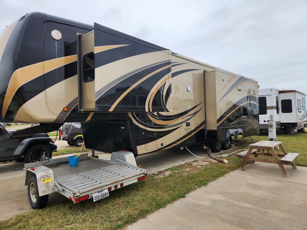 Completely remodeled unit with kitchen repainted, wallpaper, new LifeProof marble pattern flooring professionally installed throughout unit. Incredible cook's kitchen with granite countertops, deep 2 compartment sink, dishwasher, residential refrigerator, convection microwave with induction cooktop, custom sink cover. Stackable washer dryer, full width rear closet and king size bed with 12" Zinus foam mattress. Fireplace in living room. All new living room furniture with 4 recliners. All shades are motorized inside. Full body paint, fiberglass roof. Screens on all windows. Just professionally washed and waxed. Just serviced both AC units. Beautiful unit inside and out. We just bought a home and are stopping RVing for the near future. Available until March. Thanks for looking!