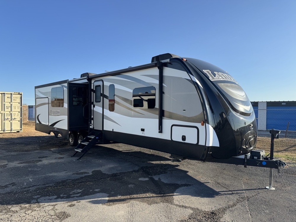I have a super clean 2017 Keystone Laredo 330RL. This is a 37ft aluminum framed smooth fiberglass sided 4 seasons luxury travel trailer with 3 large slide outs. This luxurious rig weights less than 8,500lbs so it is easy to tow. It is fully equipped. It features all electric jacks, a large electric patio awning, aluminum wheels with Goodyear tires, tinted frameless windows, ladder, a complete outside kitchen entertainment center with stereo, LED TV, cooktop, refrigerator and a microwave and much more. Inside the amenities continues. It features dual rooftop A/C’s, Corian countertops, freestanding dinette, LED TV, stereo, fireplace, hide a bed sofa, theater seats and nice pantry and counter space. Up front it has a fully enclosed private bathroom with a glass shower and a private master suite with a queen bed and a huge closet and wardrobe. Super clean and ready to go. Financing is available. $23,995 Tex Star RV Azle Tx