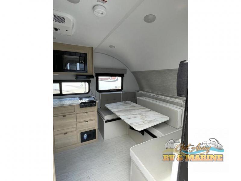 The bedroom features 1 slideout, which makes for a much roomier experience than you'd get from a travel trailer in this weight class. Lots of storage overall. Very modern interior. Lightweight, making it great for towing via small SUV.