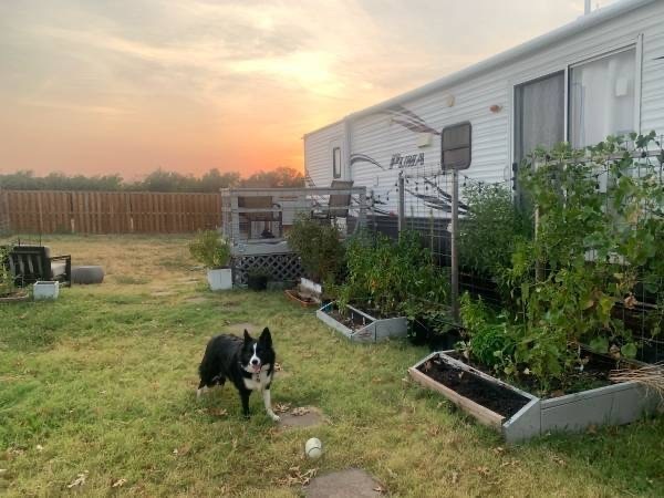 Prefer to sell it in-place in Mustang RV Park as it is leveled all around with jack stands for additional stability, includes two-level wood deck, 7’x7’ acrylic storage shed, hog-panel large fenced yard (park staff fertilizes and mows) and multiple productive raised garden beds. Mustang RV park has lowest lot rent in the region, the best owners/management you can imagine, country setting with beautiful sunsets, great neighbors, laundry room, storm shelter, RV tech onsite, dog park, 15 minutes to beach/trails/boat ramp at Isle Du Bois State Park, 10 minutes to Aubrey or Pilot Point.