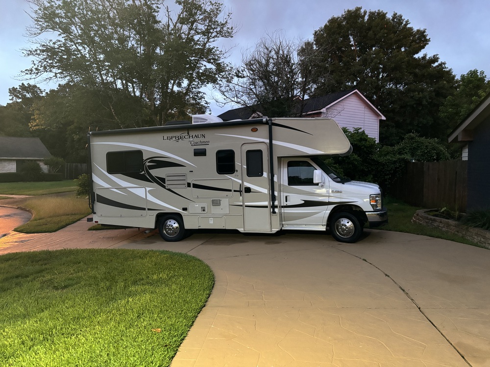 F-350 6.8 triton V 10. This Motorhome is Road Ready, meaning everything is already working, been repaired or replaced. Comparing it to one that is cheaper because it needs to be made road ready might cost you more. It Runs great, new carburetor Cummins Onan 4000 generator. New viper security system. LED bulbs. AC runs cold 13,500 BTU, Dry weight 10,400. One slide out, new tires in front, Dooley back tires like new, new 40 inch smart TV, antenna with booster, large, cold refrigerator, sleep 6, master queen, queen bunk, and dining that makes into double bed. Hitch weight 5000 pounds. New 16 foot awning. Incredible storage. Outside enclosure for TV/cable under awning. Recently sealed roof and caulked windows. Drives easy.
