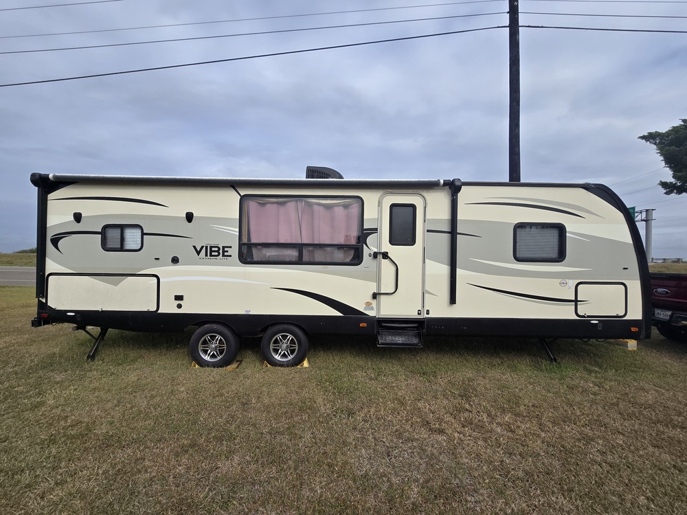 The 2016 Forest River Vibe 268RKS is a sleek and stylish travel trailer that offers a comfortable and convenient way to travel and explore the great outdoors. With its modern design and spacious interior, this trailer is the perfect home away from home for your next adventure.The exterior of the Vibe 268RKS features a durable construction and aerodynamic shape, making it easy to tow and maneuver on the road. The sleek lines and stylish graphics give this trailer a contemporary look that is sure to turn heads wherever you go.Inside, the Vibe 268RKS boasts a well-designed floor plan that maximizes space and functionality. The living area features a comfortable sofa and dinette, perfect for relaxing or entertaining guests. The kitchen is fully equipped with a refrigerator, stove, microwave, and plenty of storage space for all your cooking essentials.The bedroom is cozy and inviting, with a queen-sized bed and storage cabinets for all your belongings. The bathroom is clean and modern, with a shower, toilet, and sink.Overall, the Forest River Vibe 268RKS is a fantastic travel trailer that offers comfort, style, and convenience in one package. Whether you're hitting the open road for a weekend getaway or embarking on a cross-country adventure, this trailer has everything you need to make your trip memorable and enjoyable. Don't miss out on the chance to own this incredible RV and start making memories that will last a lifetime.