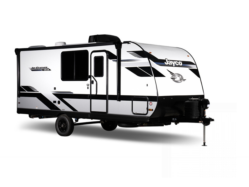 With any Jay Feather Air travel trailer by Jayco, you will enjoy lightweight towing and a variety of features to make each camping trip count! The Climate Shield insulation system helps extend your camping season by keeping you comfortable even in extreme weather conditions, and the Rock Solid stabilizer system means set up will be a breeze. An 18" rear roof ladder lets you easily clean the top of your Magnum Truss roof, and the 2" receiver will be perfect for your bike rack. The Overland 1 Solar Package with a 200W solar panel and 30-amp controller will provide off-grid capabilities, or you can can choose the optional Overland 2 Solar Package with two panels instead! Each Jay Feather Air includes residential-style seamless countertops inside, along with stainless steel sinks, decorative backsplash, and decorative roller shades with a reflective barrier to help keep the sun's rays out.